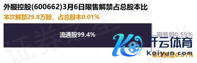 证券之星音讯,凭证商场公开信息整理,外服控股(600662)于3月6日将有29.8万股限售股份解禁,为公司股权激勉限售股份,占公司总股本0.01%。(本次数据凭证历史公告整理得出,骨子情况以上市公司最新公告为准)最近一年内,该股累计解禁12.16亿股开yun体育网,占总股本的53.27%。本次解禁后,公司还有1341.58万股限售股份,占总股本0.59%。具体如下图所示: